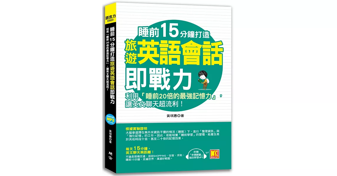 博客來-睡前15分鐘打造旅遊英語會話即戰力:利用「睡前20倍的最強記憶力」,讓英文聊天超流利!(附贈「中英對話」強效學習MP3)訂購網址: https://www.books.com.tw/exep/assp.php/87926/products/0010849974?utm_source=87926&utm_medium=ap-books&utm_content=recommend&utm_campaign=ap-202010