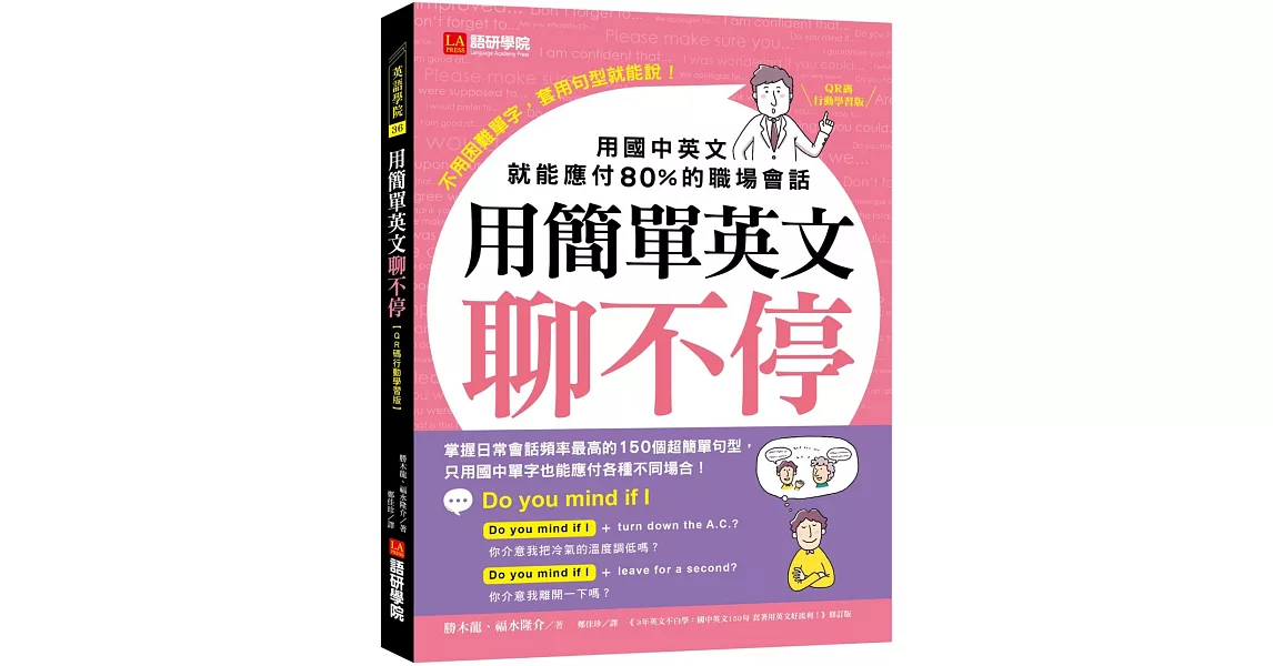 博客來-用簡單英文聊不停【QR碼行動學習版】:用國中英文就能應付80%的職場會話(附中英對照QR碼線上音檔)訂購網址: https://www.books.com.tw/exep/assp.php/87926/products/0010848642?utm_source=87926&utm_medium=ap-books&utm_content=recommend&utm_campaign=ap-202010